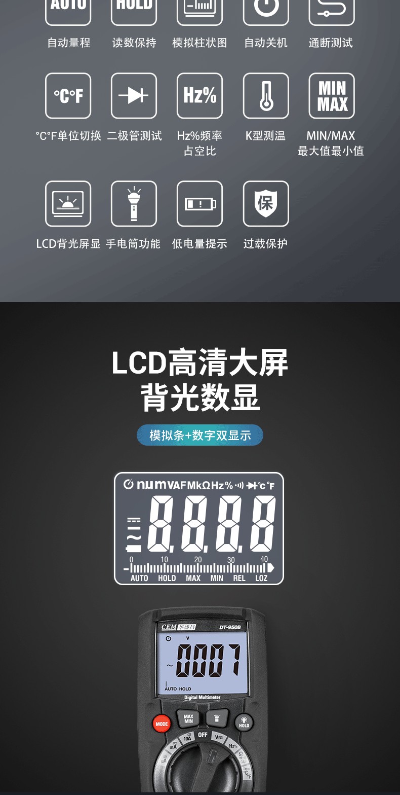 數(shù)字萬用表,一種多用途電子測量儀器,一般包含安培計(jì)、電壓表、歐姆計(jì)等功能,有時(shí)也稱為萬用計(jì)、多用計(jì)、多用電表,或三用電表。 數(shù)字萬用表適用于基本故障診斷的便攜式裝置,也有放置在工作臺的裝置,有的分辨率可以達(dá)到七、八位。 數(shù)字多用表(DMM)是在電氣測量中要用到的電子儀器。它可以有很多特殊功能,但主要功能就是對電壓、電阻和電流進(jìn)行測量,數(shù)字多用表,作為現(xiàn)代化的多用途電子測量儀器,主要用于物理、電氣、電子等測量領(lǐng)域。