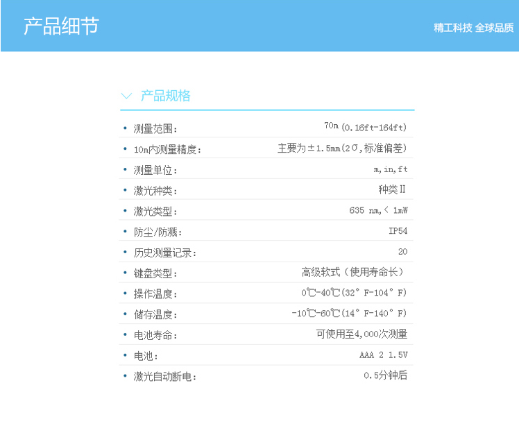 LDM-70為CEM自主設計、研發(fā)和制造的工業(yè)級遠距離手持式激光測距儀,使用簡單安全,僅需單人操作無需借助其他工具,即使在非??量痰臏y量環(huán)境中也能輕松應對。65米/70米能滿足更多工業(yè)與建筑行業(yè)的需求。 1、面積體積的計算功能; 2、運用勾股定理間接測量; 3、加減功能; 4、連續(xù)測量功能; 5、最大與最小距離跟蹤; 6、背光顯示與多行顯示; 7、蜂鳴提示; 8、精度±1.5mm; 9、外觀小巧,雙注塑防滑軟膠超舒適手感。