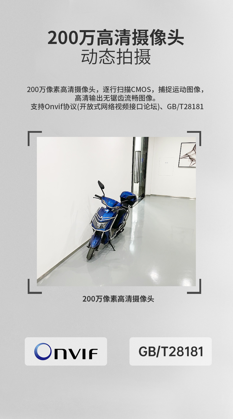 電動車識別預警攝像機:電動車識別預警攝像機設(shè)備嵌入電動車識別算法,實現(xiàn)對電動車檢測分析識別,實時預警周界區(qū)域內(nèi)電動車闖入事件,前端攝像機一體化完成分析、識別、預警,并上傳平臺。