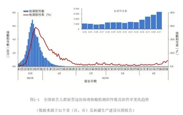 從中國疾病預防控制中心發(fā)布的數(shù)據(jù)來看,目前陽性案例確實在增加,但總數(shù)仍較少。國內(nèi)12月-1月感染高峰之后,新冠病毒并沒有完全消失,而是維持著低于1%的檢測陽性率。而近期,新冠陽性人數(shù)和檢測陽性率都有上升趨勢,4月27日檢測陽性率為4.4%。