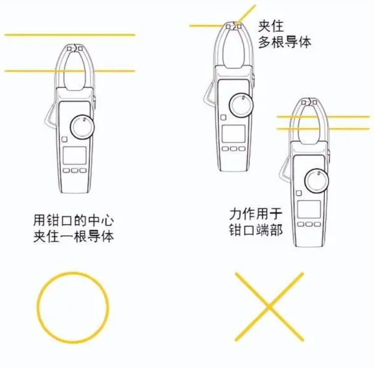 在測量時(shí),要使被測量的導(dǎo)線位于鉗口的中央處,并且使鉗口處于閉合緊密狀態(tài),這樣可以有效地減少誤差。