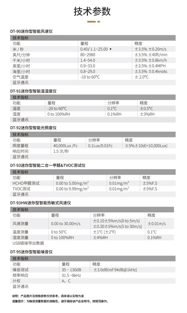 CEM華盛昌推出智能型迷你環(huán)境測(cè)試儀DT-90系列,為環(huán)境質(zhì)量多維度的測(cè)量檢測(cè)應(yīng)用上提供了產(chǎn)品解決方案和技術(shù)支持。這里所指的“多維度”,指對(duì)環(huán)境質(zhì)量的風(fēng)輪式風(fēng)速/溫度、溫濕度、光照度、甲醛/TVOC濃度、空氣速度/溫度/體積流量及噪音的多指標(biāo)一站式智能測(cè)量。
